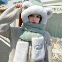 帽子 レディース 秋冬 ニット帽 ネックウォーマー 手袋 一体型 フード