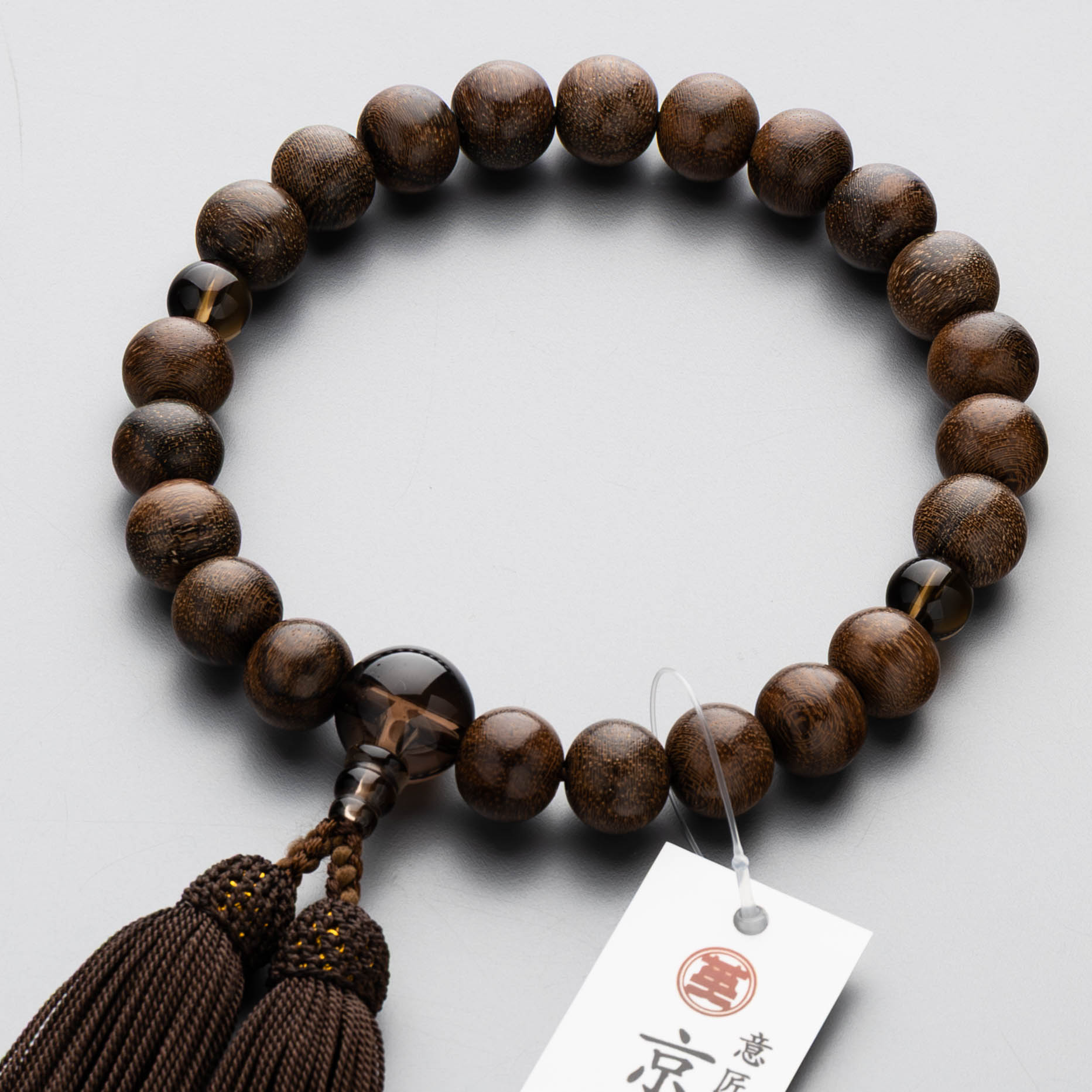 数珠 男性用 シャム柿22玉 茶水晶仕立 正絹房 数珠