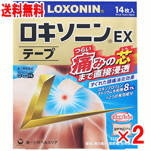 商品価格:3960円 レビュー件数:0 レビュー平均:0 店舗名: くすりのチャンピオンジャンルID: 553394< 購入ページを表示> [商品名称]【11月25日(火)限定!当店ポイント3倍セール】【第2類医薬品】ロキソニンEX テープ 14枚×2個セット[キャッチコピー]★税込3,980円以上お買い上げで送料無料★ [商品説明]商品の特長 ●すぐれた鎮痛消炎効果をもつ「ロキソプロフェンナトリウム水和物」をシリーズ史上最高濃度8.1%配合※1。 ●さらに鎮痛補助成分と血行促進成分を追加配合※2。 ●今すぐ取りたいつらい痛みの芯まで直接浸透してしっかり効く。 ●高い伸縮性とこだわりの薄型設計で、貼り心地とはがれにくさを追求。 ※1 ロキソニン外用薬シリーズとして ※2 トコフェロール酢酸エステル、l-メントール 内容量 14 枚×2個:テープ面積 132x15x157 効能・効果 腰痛、筋肉痛、肩こりに伴う肩の痛み、関節痛、腱鞘炎(手・手首の痛み)、肘の痛み(テニス肘など)、打撲、捻挫 用法・用量・使用方法 表面のライナーをはがし、1日2回を限度として患部に貼付してください。 使用上の注意 してはいけないこと)※守らないと現在の症状が悪化したり副作用が起こりやすくなる。 ・次の人は使用しないでください。 (1)今までに本剤によるアレルギー症状(例えば発疹、発赤、かゆみ、かぶれなど)を起こしたことがある人。 (2)ぜんそくを起こしたことがある人。 (3)妊婦または妊娠していると思われる人。 (4)15歳未満の小児。 ・次の部位には使用しないでください。 (1)目の周囲、粘膜など。 (2)湿疹、かぶれ、傷口。 (3)みずむし、たむし等または化膿している患部。 ・連続して2週間以上使用しないで下さい。 (相談すること) ・次の人は使用前に医師または薬剤師に相談してください。 (1)医師の治療を受けている人。 (2)本人または家族がアレルギー体質の人。 (3)今までに薬や化粧品などによるアレルギー症状(例えば発疹、発赤、かゆみ、かぶれなど)を起こしたことがある人。 ・次の場合は、直ちに使用を中止し、この箱を持って医師または薬剤師に相談して下さい。 (1)皮膚に、発疹、発赤、はれ、かゆみ、ヒリヒリ感、かぶれなどの症状があらわれた場合。 (2)5〜6日間使用しても症状の改善がみられない場合。 全成分 膏体100g中 キソプロフェンナトリウム水和物8.10g(無水物として7.14g)炎症や痛みのもと【プロスタグランジン】をおさえます。 トコフェロール酢酸エステル2.3g患部の血行を促進し、痛みをやわらげます。 l-メントール3.5g清涼感を与え、痛みをやわらげます。 添加物:スチレン・イソプレン・スチレンブロックコポリマー、ポリイソブチレン、水添ロジングリセリンエステル、BHT、ステアリン酸亜鉛、流動パラフィン、その他3成分 文責 登録販売者 大西 隆之 広告文責 (株)フェリックスコーポレーションお客様専用ダイヤル 06-6556-6663 メーカー(製造) 第一三共ヘルスケア株式会社 お客様相談室 電話番号・・・0120-337-336 電話受付時間・・・9:00〜17:00(土、日、祝日を除く) 区分 日本製・第2類医薬品 【医薬品使用期限について】医薬品の使用期限は365日以上のあるものをお送りします。【医薬品販売に関する記載事項】(必須記載事項)はこちら < 購入ページを表示>