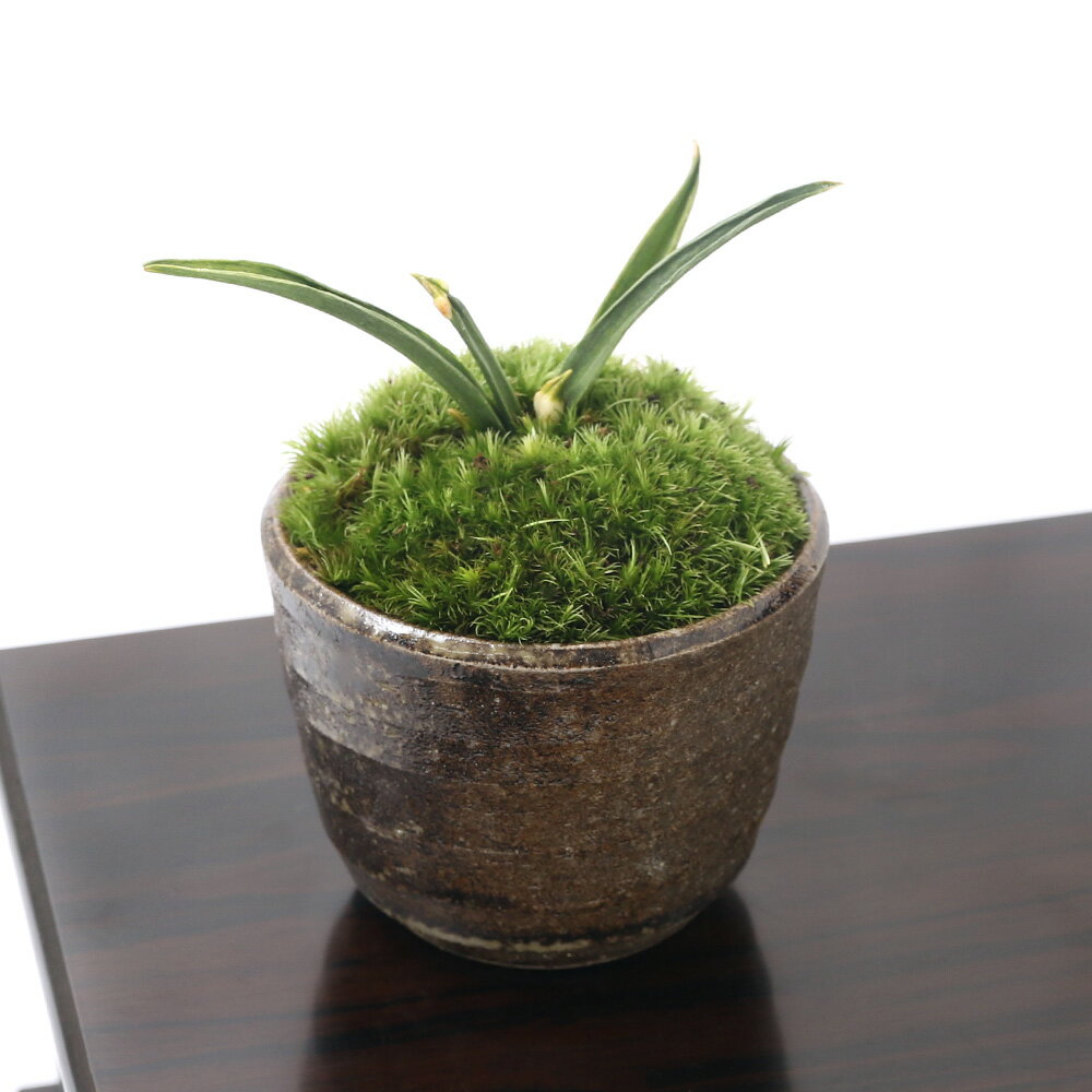 (山野草)苔盆栽 品種系オモト 群雀 穴有益子焼植木鉢(炭化)(1鉢)
