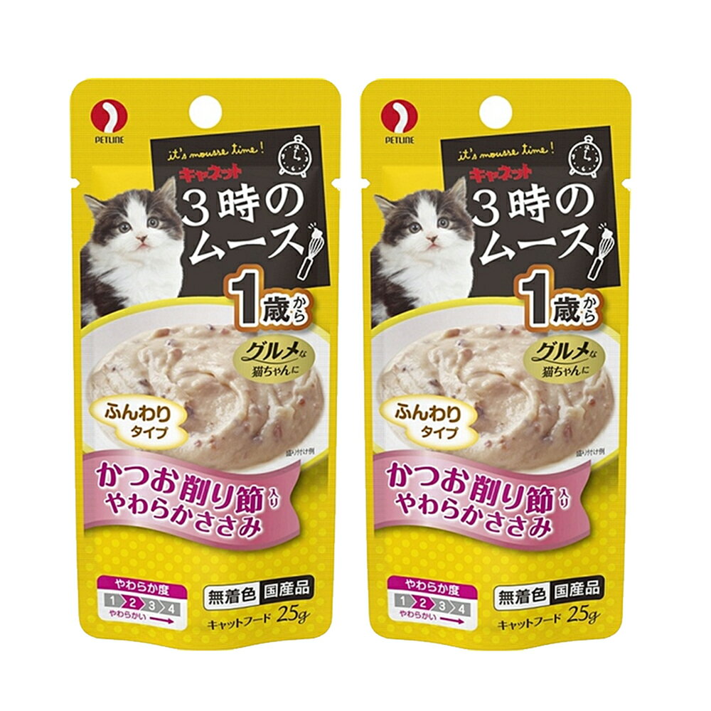 [商品名称]ペットライン 3時のムース 1歳から かつお削り節入りやわらかささみ 25g×2袋 キャットフード 成猫用 関東当日便