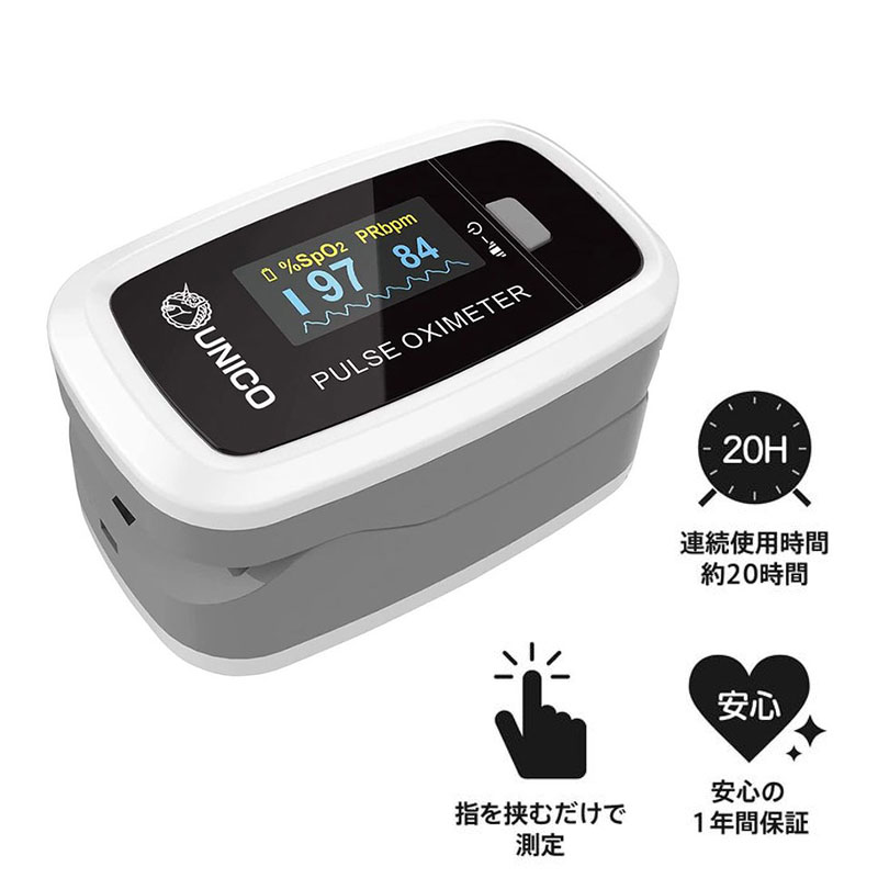 [商品名称]ユニコ パルスオキシメーター NC50D1 医療機器認証 ストラップ カバー 電池付属 パルスオキシメーター オキシメーター spo2