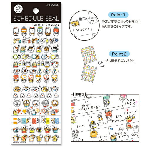 [商品説明]◆素材:透明PET / 再剥離糊使用 ◆台紙付き ◆パッケージサイズ:H202×W75×D1mm ◆シールサイズ:H170×W70mm ◆重量:6g スケジュール帳を可愛くデコレーションできるシールです☆ いつもよりピースサイズを小さくしたので、小さい手帳にも貼りやすくなりました 人気のキャラクターたちーがあなたの手帳を可愛く彩ってくれます。 手帳/予定表/猫/ネコ/トラ猫/張り直せる/SEAL/記念日L/デコ/かわいい/ごろごろにゃんすけ/スケジュール帳/手帳用シール/行事シール/ネコ/可愛い/2020年手帳/mindwave マインドウェイブ