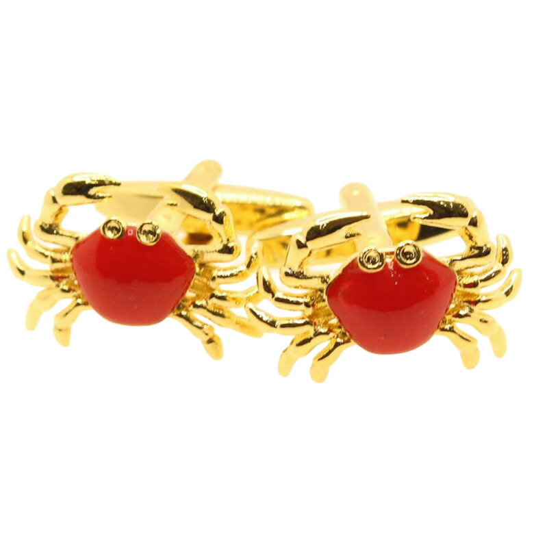 [商品名称]蟹 カニ かに 蟹モチーフ レッド×ゴールド カフス カフリンクス カフスボタン
