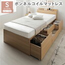 [商品名称]宮付き チェスト ベッド ショート丈シングル ナチュラル ボンネルコイルマットレス付き 2口コンセント付き 大容量 引き出し4杯 引き出し収納付 収納スペース付 すのこベッド 収納ベッド ベッドフレーム 寝具 インテリア家具 寝室家具 ベッドルーム 寝室 組立品
