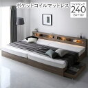 [商品名称]ベッド ワイドキング 240 SD+SD 3ゾーンポケットコイルマットレス付 グレージュ 連結 照明 宮付 収納ベッド