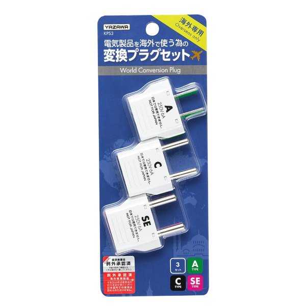 ヤザワ 海外用電源変換プラグセット Aタイプ→A/C/SEタイプ YAZ