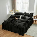 [商品名称]布団カバー 3点セット 4点セット フリル付き布団カバー 寝具カバー 洋式・和式兼用 ベッドカバー 掛け布団カバー ボックスシーツ 枕カバー シーツカバー 肌に優しい ピーチスキン加工 北欧風 四季通用 (シアサッカーブラック, 3点セット*シングル