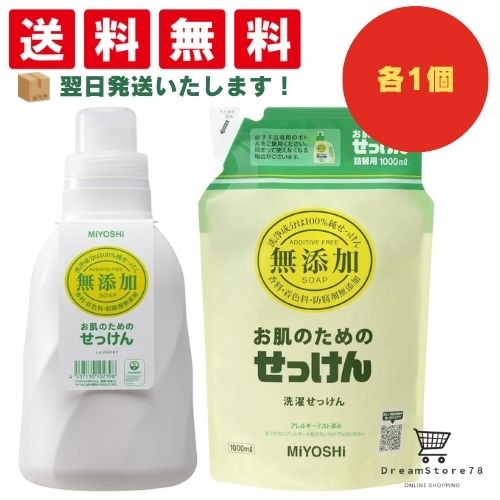 [商品名称]【4~11ポイント10倍】 ミヨシ 液体洗剤 無添加 お肌のための洗濯用 液体せっけん 本体 1100ml + 詰め替え 1000ml +オリジナルおしぼり付 本体1個+詰め替え1個セット 石鹸 オーガニック 子供用 大人用 敏感肌 赤ちゃん ニキビ アトピー 保湿 乾燥肌