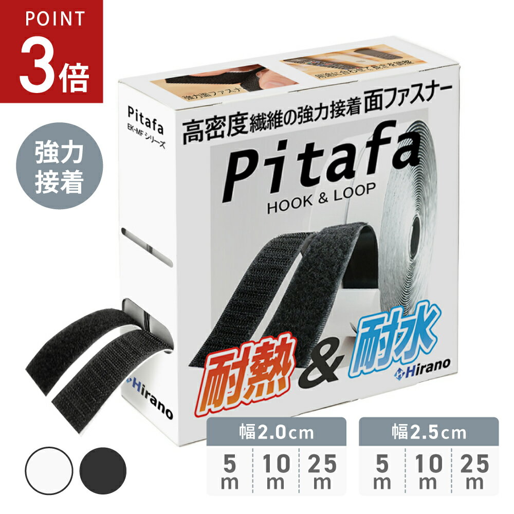 [商品名称]【10/24-27限定P3倍】 \ランキング独占/ 超強力マジック貼付テープ 面ファスナー 両面テープ付き 耐熱 防水 屋内 耐熱テープ 超強力 10m 2cm ブラック ホワイト 貼付テープ DIY インテリア 手芸 [幅2cm/2.5cm×5m/10m/25m] [Pitafa]
