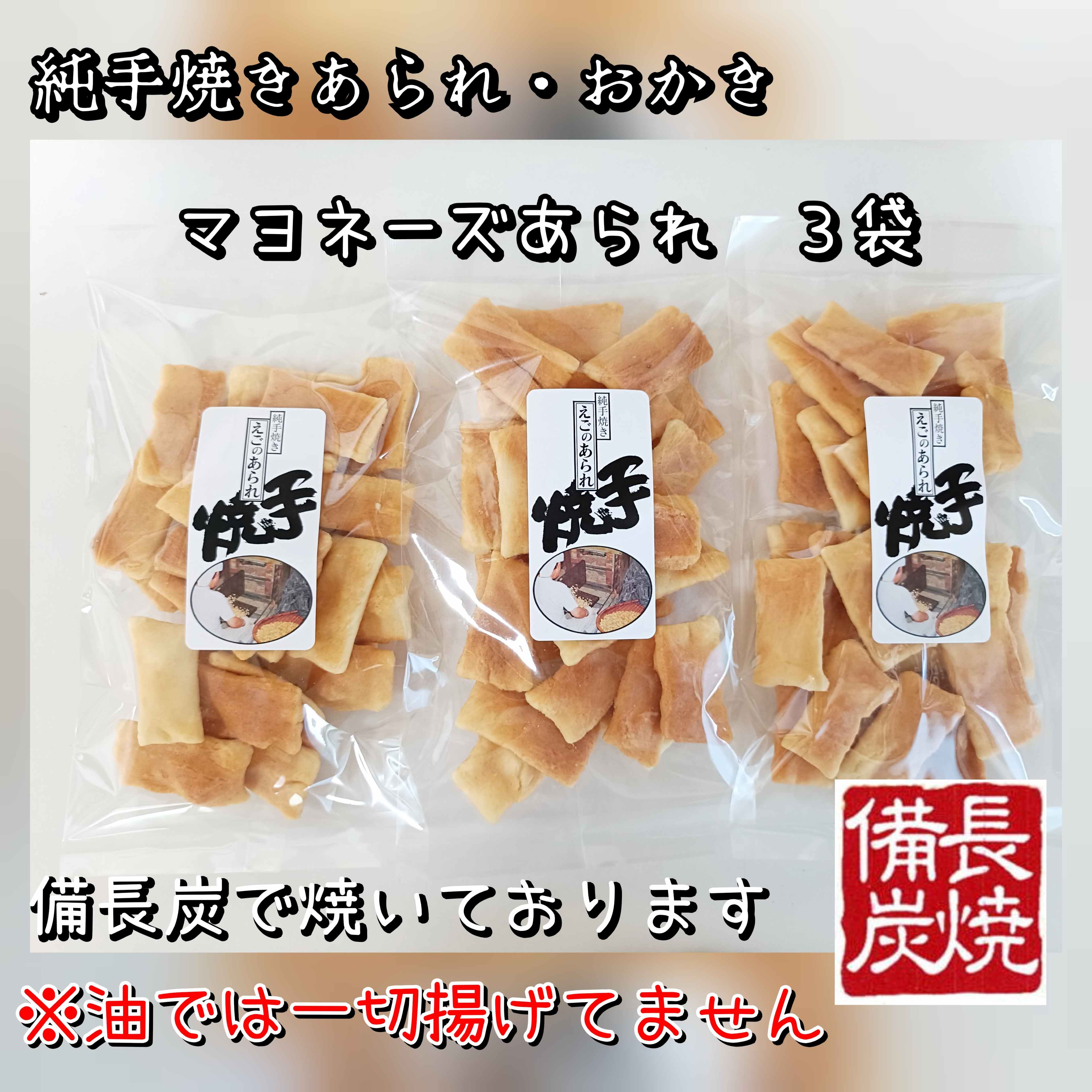 [商品名称]【今だけ1000円ポッキリ【【送料込み】【マヨネーズ】えご製菓 純 手焼き マヨネーズあられ単品3袋セット ご自宅用 ゆうパケット A4サイズ おすすめ 大阪 寝屋川 美味しい 大人気 有名 スイーツ 焼き菓子 工場直送 専門店 お試し 通販 素焼き名物 高級 こだわり 備長炭