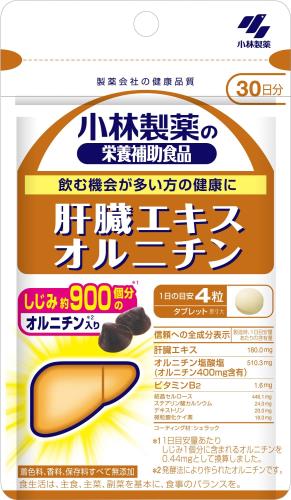 商品価格:1532円 レビュー件数:0 レビュー平均:0 店舗名: eli-mino ゆらぎ薬局ジャンルID: 567622< 購入ページを表示> [商品名称]小林製薬の栄養補助食品 肝臓エキス オルニチン しじみ 約900個分! の オルニチンを配合 サプリメント サプリ [ 栄養補助食品 / 120粒 / 約30日分 ][商品説明]飲む機会が多い方の健康に 小林製薬「肝臓エキス オルニチン」は飲む機会が多い方にオススメな肝臓エキスとオルニチン2つの成分を配合したサプリメントです。 しじみ約900個分のオルニチンを配合 オルニチンはしじみに含まれる貴重な栄養成分。1日目安4粒で、しじみ約900個分相当のオルニチンを効率よく摂取できます。(しじみ1個分のオルニチンは0.44mgとして換算、本品は発酵法により作られたオルニチンを使用) 肝臓エキスを配合 肝臓エキスとは、豚の肝臓をたんぱく質分解酵素で分解し、吸収しやすくした栄養成分です。そんな肝臓エキスを180配合しています。 小林製薬「肝臓エキス オルニチン」は持ち運びやすいパウチタイプ。また、飲みやすい粒タイプを採用しています。 召し上がり方1日4粒を目安に、かまずに水またはお湯とともにお召し上がりください。食生活は、主食、主菜、副菜を基本に、食事のバランスを。 < 購入ページを表示>