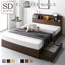 [商品名称]ベッド セミダブル ボンネルコイルマットレス付き ブラウン フラップ扉 照明付 収納付 棚付 宮付 コンセント付き