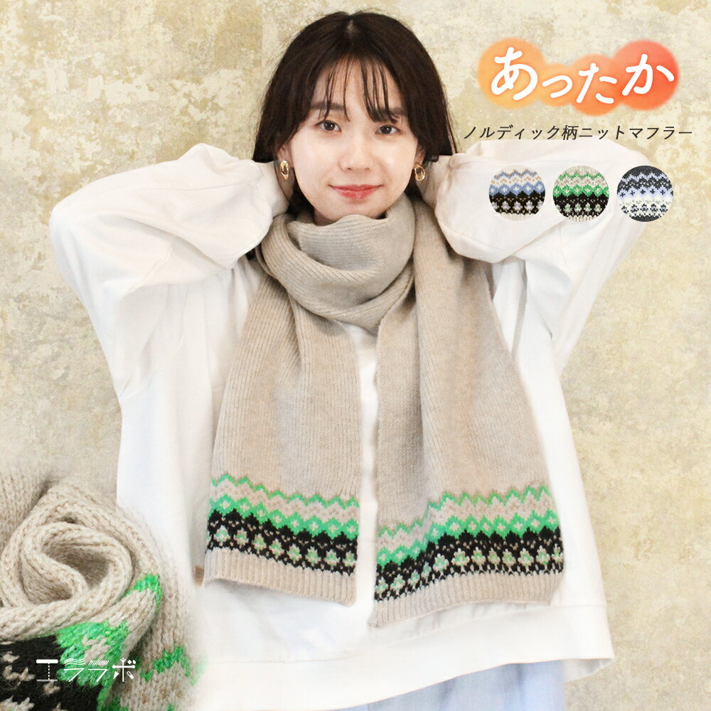 マフラー ニットマフラー ノルディック柄 レディース あたたかい 暖か