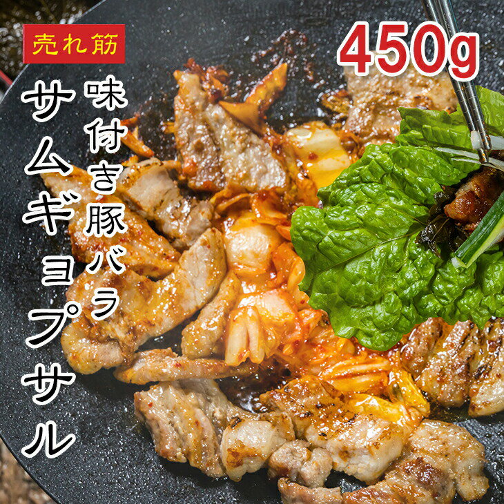[商品名称][どれでも5品で送料無料] サムギョプサル 450g【動画あり】 韓国料理 ピリ辛 味付き フライパンで焼くだけ 美味しい ご飯が進む おかず一品 お弁当 ホットプレート パーティー サムギョプサル丼 豚バラ肉 豚肉 本格味 韓国 ギフト 母の日 冷凍★