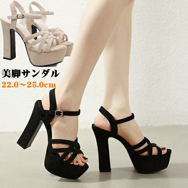 [商品名称]サンダル レディース ヒール サンダル ハイヒール 太ヒール おしゃれ 13cmヒール アンクルストラップ 調節可能 ストーム オープントゥ クロスベルト 小さいサイズ 大きいサイズ 結婚式 パーティー 2次会 二次会 ブラック ベージュ22.0 22.5 23.0 23.5 24.0 24.5 25.0cm