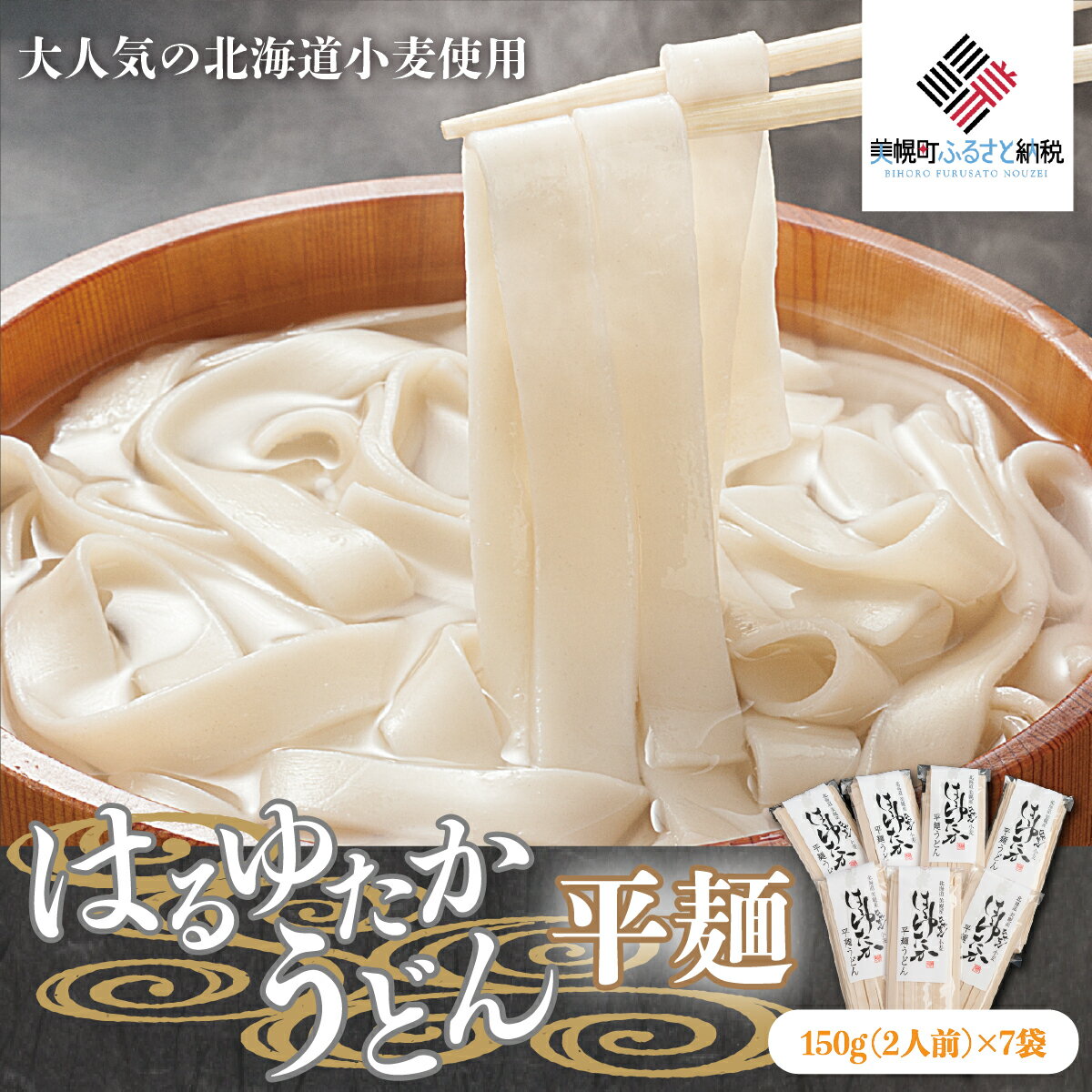 [商品説明]名称 大人気の北海道小麦使用「はるゆたかうどん 平麺」 保存方法 常温 発送時期 お申し込み後、順次発送 提供元 株式会社マルワ製麺 お礼品の特徴 美幌町の生産者、(有)三雄産業・喜多秀雄さんが生産した「ハルユタカ小麦」だけで加工した乾燥うどん。食べたい時に必要な分だけ、のど越しの良い風味豊かなはるゆたかうどんをお召し上がりください。 ■生産者の声 スタッフ一同「美味しい」と喜んでいただける麺づくりに励んでおります。安全・安心・安価をモットーに北海道美幌町からぽしい麺をお届けさせて頂きます。 ■内容量/製造地 150g(2人前)×7袋 ■賞味期限 240日 ■原材料 小麦 ■注意事項/その他 高温多湿を避け常温保存してください。/開封後は賞味期限に関係なくお早めにお召し上がりください。 ※画像はイメージです。 ふるさと納税よくある質問はこちら 寄付申込みのキャンセル、返礼品の変更・返品はできません。あらかじめご了承ください。