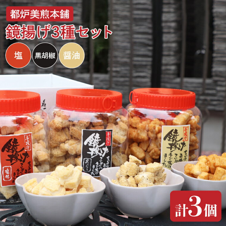 【ふるさと納税】都炉美煎本舗 鏡揚げポット入り3個セット(醤油・塩・黒こ