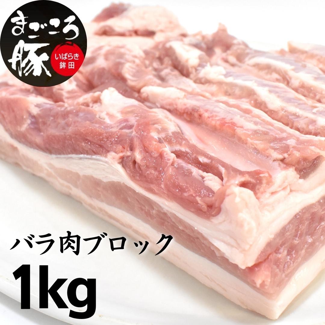 [キャッチコピー]茨城県 鉾田市 ブランド豚 ギフト 最上級オリジナルポーク まごころ豚 甘さ 弾力 ジューシー バラ肉 ブロック 1kg 送料無料 A-17