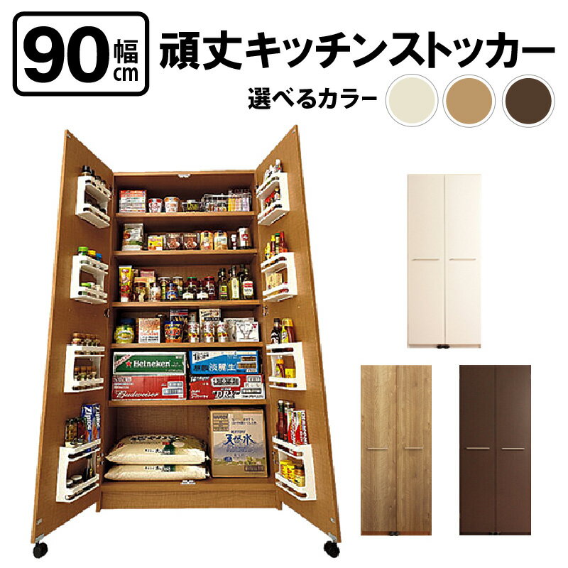 [商品名称]【ふるさと納税】頑丈キッチンストッカー 幅90cm GK-90≪寄附者様組み立て品≫【カラーをお選びください】3梱包【キッチン 台所 収納 ラック スリム ゴミ箱 食器棚 食料庫 食糧庫 棚 レンジ 台 パントリー 大容量 木製 収納庫 ペットボトル ビール 買い置き ストック 家具】