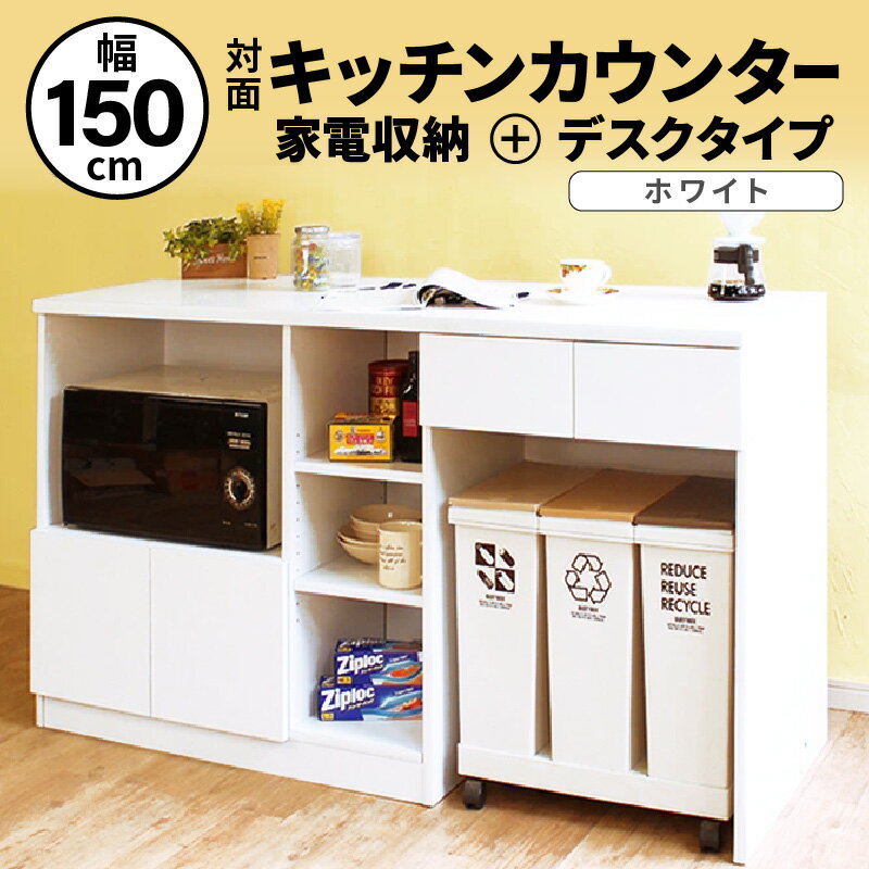 [商品説明]料理の下ごしらえやちょっとした作業にもピッタリ! デスク下にはダストボックスを収納できるオープンスペースがあります 【商品全体】幅150×奥行60×高さ83cm 【引出内寸】幅25×奥行38×深さ11cm 【収納部内寸】 (デスク下オープン部)幅56×奥行41×高さ65cm (オープン棚部)幅28×奥行36×高さ71cm (レンジ収納部)幅58×奥行38×高さ41cm (扉内)幅58×奥行37×高さ28cm (背面カウンター)奥行15cm ■耐荷重(kg)/[天板]30 [棚板]5 ■日本製 ■お客様組立 ※商品出荷時「出荷のお知らせ」メールをお送りいたします。 ※ご注文殺到時、お届けに時間がかかる場合がございます。 ※美浜町内への返礼品発送は対応しておりません. ※一部離島への配送はできません。(クール便対応不可地域) 誠に勝手ではございますが、あらかじめご了承ください。 名称 キッチンカウンター 幅150cm 内容量等 キッチンカウンター 幅150cm KC-150 ホワイト 2梱包 製造/加工地:美浜町 製造者:株式会社 美浜商事 原材料 [本体]プリント紙化粧繊維合板 配送 常温配送 ※出荷:2個口 ※出荷サイズ:158cm×63cm×14cm 95cm×61cm×13cm 事業者 株式会社 美浜商事 備考 ※画像はイメージです。 ※寄附申込みのキャンセル、返礼品の変更・返品はできません。 誠に勝手ではございますが、あらかじめご了承ください。 ・ふるさと納税よくある質問はこちら ・寄附申込みのキャンセル、返礼品の変更・返品はできません。あらかじめご了承ください。 類似返礼品はこちら【ふるさと納税】対面キッチンカウンター デスク120,000円【ふるさと納税】対面キッチンカウンター 家電収120,000円【ふるさと納税】キッチンカウンター 幅120c141,000円【ふるさと納税】頑丈キッチンストッカー 幅75151,000円【ふるさと納税】薄型ランドリーラック 幅60c90,000円【ふるさと納税】薄型ランドリーラック 幅45c75,000円【ふるさと納税】薄型ランドリーラック 幅30c60,000円【ふるさと納税】シンプルデスク 幅90cm S75,000円【ふるさと納税】薄型サニタリー収納(フラップ)90,000円新着返礼品はこちら2025/11/29【ふるさと納税】苦くな~い!野菜ぎらいの子もモ6,000円~2025/11/29【ふるさと納税】毎日の健康習慣に やさしい低カ6,000円~2025/11/29【ふるさと納税】新鮮野菜 美浜の水で育った ピ4,000円~再販返礼品はこちら2025/12/6【ふるさと納税】《期間限定》 福井県産「ふく小5,000円2025/12/6【ふるさと納税】令和6年産 米 越地(こいち)6,000円2025/12/6【ふるさと納税】【冷蔵】 旬のセイコガニ 小 10,000円2025/12/06 更新 【ふるさと納税】キッチンカウンター 幅150cm KC-150 ホワイト ≪寄附者様組み立て品≫ 2梱包 [m13-m004]