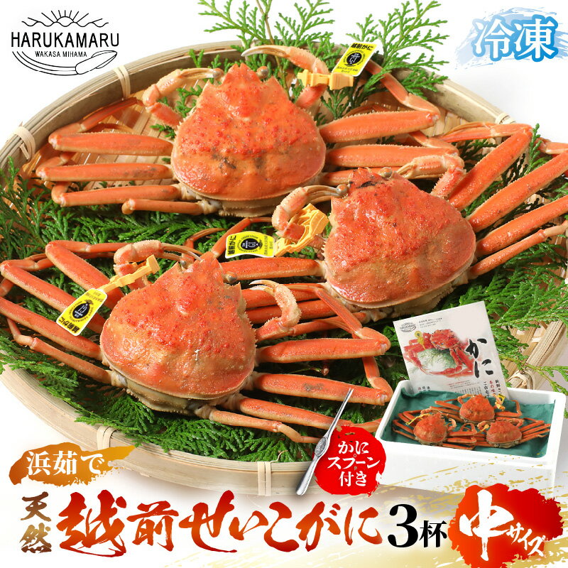 [商品名称]【ふるさと納税】はるか丸厳選!≪浜茹で≫ 越前 せいこがに 中サイズ 約150g × 3杯【冷凍】かにスプーン付き【急速冷凍 セイコガニ セコガニ 福井 越前がに 本場の味 蟹 ずわいがに ズワイガニ 雌 メス】