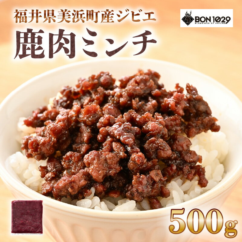 [商品説明]美浜町の大自然に育まれた鹿の肉を100%使用。 500gを真空冷凍して、お届けします。 美浜町で育った鹿肉100%使用・高タンパク・低カロリー・鉄分豊富で臭みもなく食べ応え満足の粗びきひき肉です。 鹿肉のひき肉に適した、肩・クビ・腕・すね等を厳選し熟成したのち粗びきにし真空冷凍しております。 ハンバーグやコロッケまたは麻婆豆腐等にしたり、キーマカレーなど気軽に料理にお使いいただけます。 また、多くのレストランでも使用して頂いている商品です。 プロも認めた最高の鹿肉粗びきミンチを味わってください。 ※商品出荷時「出荷のお知らせ」メールをお送りいたします。 ※ご注文殺到時、お届けに時間がかかる場合がございます。 ※美浜町内への返礼品発送は対応しておりません. ※一部離島への配送はできません。(クール便対応不可地域) 誠に勝手ではございますが、あらかじめご了承ください。 名称 鹿肉(ミンチ)500g 内容量等 鹿肉ミンチ500g 加工/製造地:福井県三方郡美浜町 加工/製造者:BON1029 原材料 鹿肉 アレルギー 本品に含まれるアレルギー表示28品目 なし 賞味期限等 製造日より2年以内(冷凍保存時) ※-18℃以下で冷凍保存 ※解凍後は冷蔵保存のうえ2週間以内を目安にお召し上がりください。 ※開封後はできるだけ早く(3日以内)にお召し上がりください。 ※一度解凍したものを再冷凍すると品質が低下しますので、できるだけお避け下さい。 配送 冷凍配送 事業者 BON1029 備考 ※画像はイメージです。 ※寄附申込みのキャンセル、返礼品の変更・返品はできません。 誠に勝手ではございますが、あらかじめご了承ください。 ・ふるさと納税よくある質問はこちら ・寄附申込みのキャンセル、返礼品の変更・返品はできません。あらかじめご了承ください。 類似返礼品はこちら【ふるさと納税】ジビエ 鹿肉 モモ ブロック 16,000円【ふるさと納税】国産 添加物不使用 鹿肉ジャー9,000円【ふるさと納税】国産 添加物不使用 鹿肉ジャー4,500円【ふるさと納税】牛肉 若狭牛 切り落とし 8011,000円【ふるさと納税】若狭牛 極上ヒレステーキ 2628,000円【ふるさと納税】土用の丑の日 国産 うなぎ 干50,000円【ふるさと納税】【先行予約】天然 ぶり 特大 8,000円【ふるさと納税】土用の丑の日 国産 うなぎ 干17,000円【ふるさと納税】定期便 ≪6ヶ月連続お届け≫ 63,000円新着返礼品はこちら2025/11/29【ふるさと納税】苦くな~い!野菜ぎらいの子もモ6,000円~2025/11/29【ふるさと納税】毎日の健康習慣に やさしい低カ6,000円~2025/11/29【ふるさと納税】新鮮野菜 美浜の水で育った ピ4,000円~再販返礼品はこちら2025/12/6【ふるさと納税】《期間限定》 福井県産「ふく小5,000円2025/12/6【ふるさと納税】令和6年産 米 越地(こいち)6,000円2025/12/6【ふるさと納税】【冷蔵】 旬のセイコガニ 小 10,000円2025/12/06 更新 【ふるさと納税】ジビエ 鹿肉 ミンチ 500g [m77-a003]