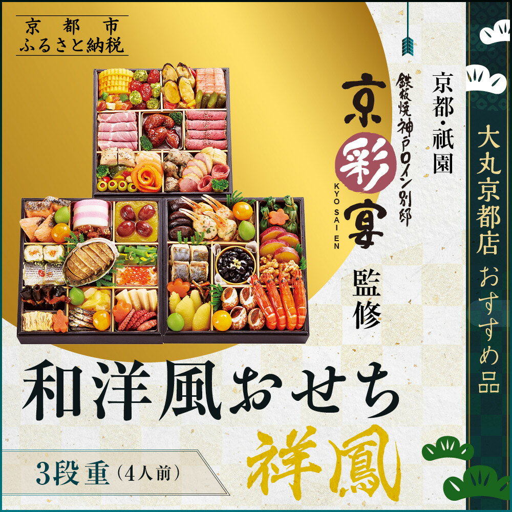 [商品名称]【ふるさと納税】【大丸京都店おすすめ品】<京都・祇園 京彩宴>監修 和洋風おせち【祥鳳】3段重4人前|京都 祇園 人気レストラン 本格和洋風おせち グルメ[ 和洋風おせち 三段 4人 56品目 送料無料 年内配送 ふるさと納税 ]