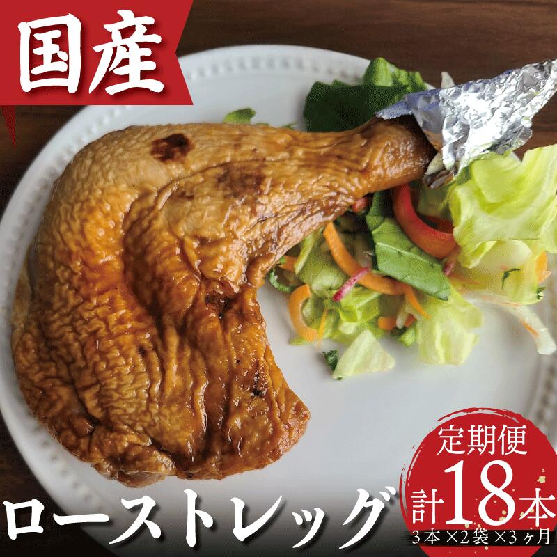 [商品名称]【ふるさと納税】 骨付鳥 ロースト チキン 18本 (3本×2袋×3ヵ月) 定期便 冷凍 国産 もも肉 真空パック 鶏肉 ローストチキンレッグ 骨付きチキン タレ レンジ お手軽 時短 調理済み 惣菜 グルメ クリスマス パーティー ワイン レシピ カード ※北海道・沖縄・離島配送不可