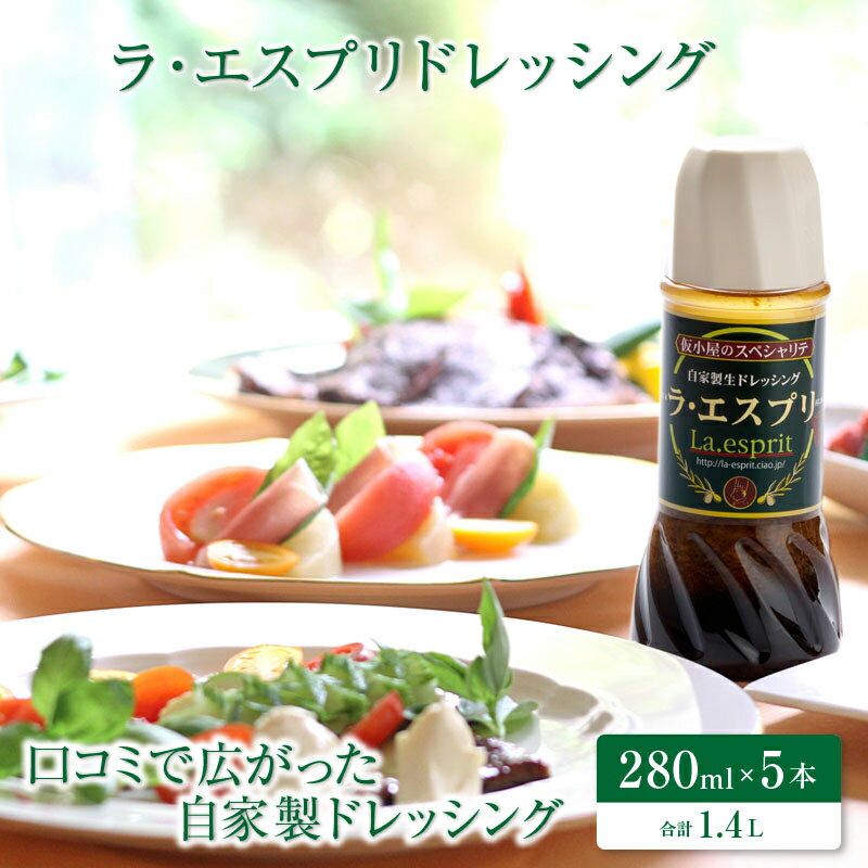 [商品名称]【ふるさと納税】 ドレッシング 和風 ラ・エスプリドレッシング 280ml × 5本 口コミで広まった自家製ドレッシング! 玉ねぎ たかの爪 椎茸 和風ドレッシング たれ 調味料 サラダ カルパッチョ【財宝】