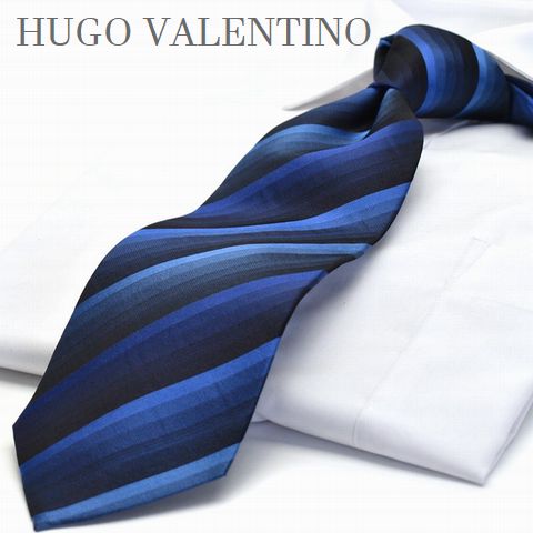 [商品名称]ネクタイ ギフト プレゼント バレンタイン 父の日 卒業式 入学式 就活 仮装 コスプレ 小柄 HUGO VALENTINO TYPE-27ネイビーブルー ストライプ