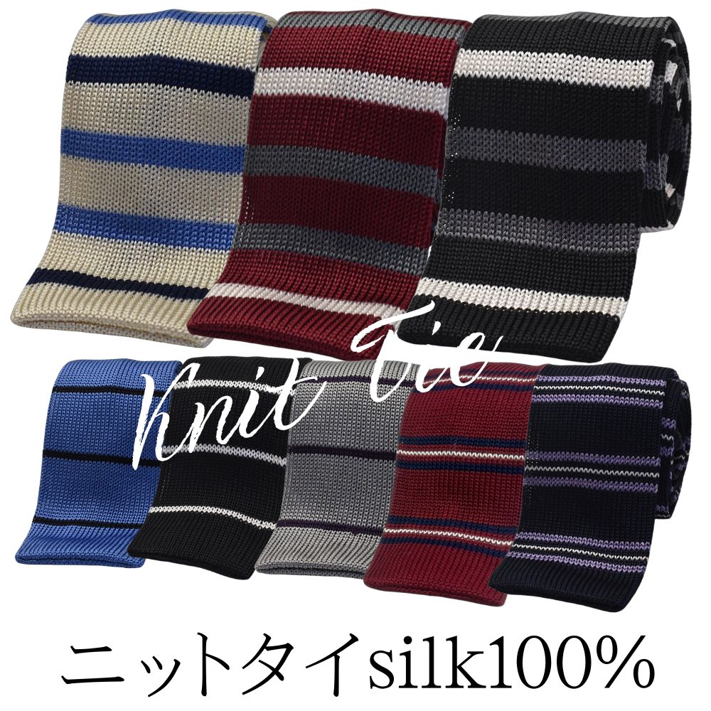 [商品名称]ネクタイ シルク100% ニット メッシュタイ 高品質 デザイン柄 ストライプ ボーダー カジュアル RBN-silk-set