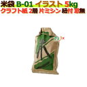 [商品名称]米袋 5kg 印刷 米印 緑片ミシン 窓なし ひも付 クラフト袋 2層 200枚/ケース B-01