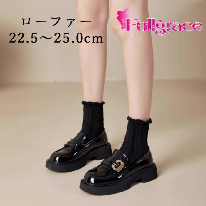[商品名称]ローファー レディース 厚底 ローファーシューズ 靴 学生 通学 通勤 ツヤあり エナメル きれいめ カジュアル シンプル ブラック 美脚 脚長 定番 22.5〜25.0cm