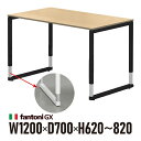 [商品説明]Garage fantoni GXシリーズ 【商品説明】 無駄のない洗練されたデザインが印象的なfantoniGXシリーズに、シックな印象のブラック脚が新登場! しっかりした作りながらどんなインテリアにも馴染みやすいため、オフィスからご家庭まで様々なシーンで活躍します。62〜82cmの範囲で天板の高さを自由に調節できる「高さ調節タイプ」です。 【商品仕様】 ●サイズ/W1200×D700×H620〜820mm ●素材/天板=合成樹脂化粧パーティクルボード(メラミン)/脚=スチールパイプ(塗装仕上げ) ●天板厚さ/18mm ●重量/28.5kg ●最大積載質量(等分布)/60kg ●カラー/天板:オーク、脚:ブラック ●組み立て所要時間/大人2名で約20分 (オプション:組み立てサービス 但し平日のみ ¥3,500+税) ※在庫表示は最新の情報に更新するよう努力しておりますが、(在庫あり)という表示でも日々の受注状況によって、在庫切れとなる場合があります。恐れ入りますがよろしく御了解ください。サイズ ●W1200×D700×H620〜820mm ●天板厚さ:18mm 重量 28.5kg 材質 ●天板:合成樹脂化粧パーティクルボード(メラミン) ●脚:スチールパイプ(塗装仕上げ) 最大積載質量(等分布) 60kg カラー 天板:オーク、脚:ブラック(436429) 組立目安 大人2名で約20分。商品付属の工具を使用 組立設置費 別途+¥3,500(税別) ※但し平日のみ。サポートしていない地域もございます。 特徴 無駄のない洗練されたデザインが印象的なfantoniGXシリーズに、シックな印象のブラック脚が新登場! しっかりした作りながらどんなインテリアにも馴染みやすいため、オフィスからご家庭まで様々なシーンで活躍します。62〜82cmの範囲で天板の高さを自由に調節できる「高さ調節タイプ」です。