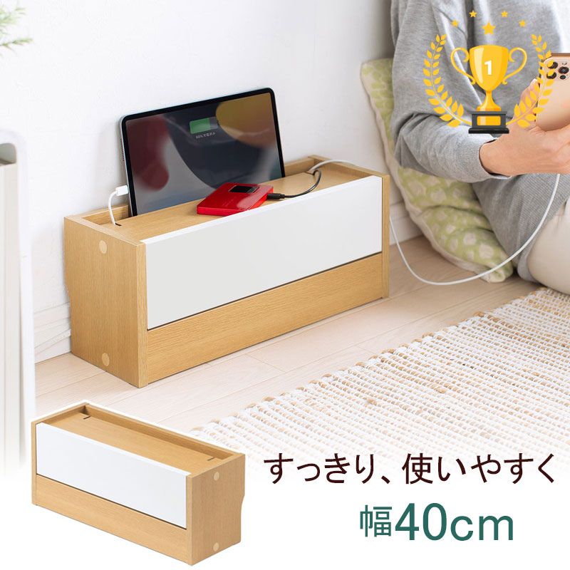 [商品説明]タップやケーブルなどを収納でき、充電ステーションにもなる便利なケーブルボックス。タブレットやスマホの充電に便利なスタンド機能付きで、デスク上などに設置しやすい小型の木製ボックス。ライトブラウン。<特長>●ケーブルや電源タップなどが綺麗に収納できる木製の収納ボックスです。●ごちゃごちゃしがちなケーブルをキレイにし見た目もスッキリさせることができます。●天板には、スマートフォンや小物などを設置できるスペース付きです。●天板にはスリットがありタブレット、スマートフォンスタンド機能搭載しています。●別途充電器を使用した充電時には底面にセットしたコネクタを接続し、スムーズに充電が可能です。●コンパクトサイズで、リビングやベッドルーム、テレビ背面、キッチンなど様々な場所に設置可能です。●前面パネルはマグネットで開閉が可能で、電源タップのスイッチのON/OFFが簡単に行え、機器のメンテナンスや配線の組み替えも楽に行えます。●内部には、タップの落下防止バー付きです。<仕様>■本体カラー:ライトブラウン■サイズ:約W400×D145×H165mm■重量:約2.45kg■総耐荷重:5kg■内寸:約W376×D95×H106.5mm■材質:木製(パーティクルボード)+プリント紙化粧合板、スチール(エポキシ樹脂粉体塗装)■出荷形態:お客様組立式(ノックダウン組立式)■生産地:中国■保証期間:初期不良のみ■取扱説明書:日本語取扱説明書あり<関連キーワード>200-CB036LM サンワサプライ ケーブルボックス タップボックス 木製 スマホスタンド 充電スタンド デスク周り収納 iphone12スタンド iphone12miniスタンド iphone12promaxスタンド iphone12proスタンド iphoneSE2スタンド iphone11スタンド iphone11proスタンド iphone11promaxスタンド iphonexsスタンド iphonexsmaxスタンド iphonexrスタンド iphonexスタンド iphone8plusスタンド iphone8スタンド リビング収納 アンティーク ウッドラック かんたん キャビネット シェルフ シンプル スリム ナチュラルインテリア ブラウン 収納家具 整理棚 多目的ラック 天然木 扉付き 北欧 無垢 無垢材 おしゃれ 収納 整理 整頓 配線 省スペース 隠し まとめ タップボックス コンパクト コード ケーブル カバー サンワサプライ 4969887827123 4969887827130