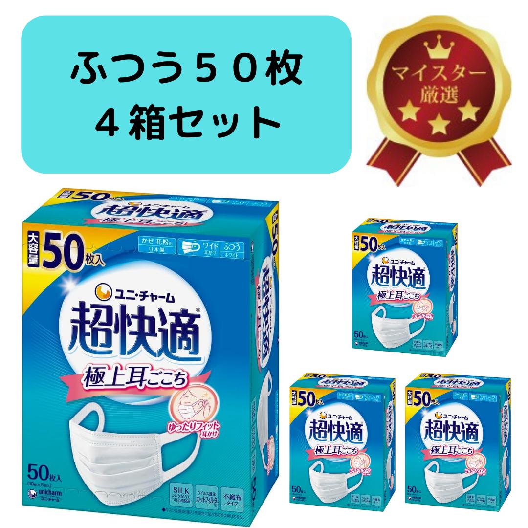 [商品説明]超快適マスク プリーツタイプ ふつう 不織布マスク 50枚×4箱 日用品サンプル付き 超快適マスク / 超快適マスク 極上耳ごこち ふつう 不織布マスク 50枚入り 風邪 花粉症 PM2.5対応 日本製 ノーズフィットつき 5