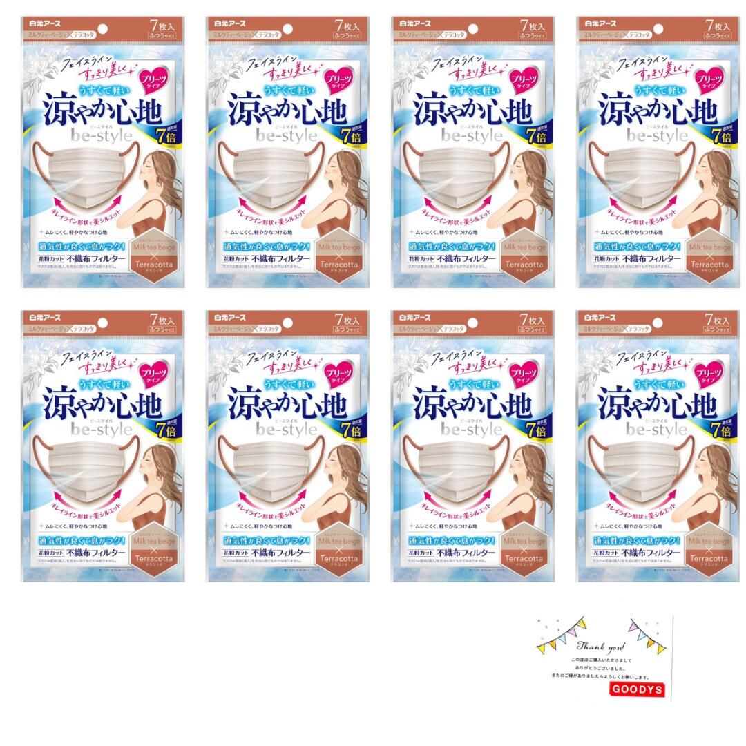 [商品名称](\先着10名様20%OFFクーポン配布中/)【ビースタイル プリーツタイプ 涼やか心地 ミルクティーベージュ×テラコッタ 7枚入×8個セット】合計56枚 おしゃれなくすみ系バイカラー 小顔見えするプリーツ形状 通気性に優れた快適素材 化粧がつきに