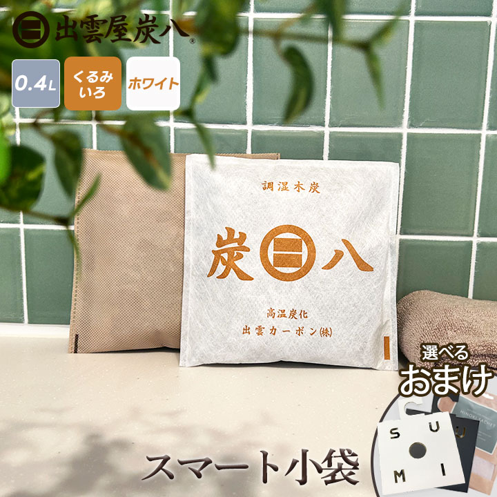 [商品説明]炭八製品Q&A グラニーレは出雲屋炭八の正規販売店です 商品選びに迷われた際はお気軽にご相談ください 【梱包について】 ・メーカーの段ボールを再利用する為、開封時のテープ跡が残る場合があります ・炭八は呼吸を続ける事で快適な湿度を保つ調湿材の為、段ボールに直接入れた状態でお届けします 【ご了承ください】 ・1点1点手作業で炭を詰めているため個体差がでる場合がございます ・炭八に含まれる水分量によっては重さが軽いと感じられる場合がございます ・通常は即納しておりますが、ご注文が殺到した場合はお待ちいただくことがあります こちらは 「400mlサイズ」専用ページです! 炭八 スマート小袋 ホワイト / くるみいろから選べます ■サイズ :19cm×19cm×厚み約2.5cm ■内容量 :調湿木炭400mL ■外装 :粉漏れしない不織布2重包装 ■使用目安:1〜2袋使用 狭い場所の除湿、消臭に 引き出し、靴、靴箱、車の中、食器棚、バックなど、ジメジメした湿気やニオイの気になる場所に置いて使用します 楽器や補聴器にも ■原材料 :リサイクルを目的とした針葉樹(スギ・ヒノキ等) ■製造方法:原材料となる木材を一定の大きさにチップ化、高温炭化により製造 ■炭化炉 :連続揺動型炭化炉 ■調湿能力:22.9mg/g (JIS調湿建材測定方法による) ■炭素率 :約93% ■寿命 :十分炭化されているため半永久的に繰り返し使える ■原産国 :日本製 粒度は用途に応じて調整 おすすめの使用場所 小さく薄いため、衣類、着物の間や下駄箱の隙間など狭い場所にも置くことができます シンク下、おもちゃ箱、本棚、衣装ケース等にもおすすめ ---------------------------------- 炭の除湿剤 出雲屋 炭八の紹介 調湿とは? 部屋の湿度が高い時には湿気(水分)を溜め込む「吸湿(除湿)」、湿度が低いとき(乾燥時)には溜めた湿気を放出「放湿(加湿)」することで、 室内の体感温度を快適に保つだけでなく、湿度を人間の健康に適した過ごしやすい40〜60%に近づけることができます 炭八(すみはち)を室内に置く2大効果 【効果1 湿度調節】 炭八の調湿力が湿度を最適な状態に整えます 室内用炭八 12L を敷布団の下に敷設すると、除湿効果で寝具内の湿度を取り除くため、空気湿度が約20%低下 布団干しをしなくても爽やかな寝心地が得られるお手入れ簡単な調湿剤です 【効果2 脱臭(防臭)作用】 嫌な臭い、カビ臭、生活臭の元となる粒子を吸着することで、においの根本原因を取り除きます トイレや玄関のシューズラックや靴箱、シューズボックス、おむつストッカー、ゴミ箱、ペットのゲージ周りなど家庭用としてはもちろん、介護施設などにも適した消臭剤、消臭炭です 炭八のここがすごい 炭八は産学連携で開発された日本で唯一の調湿木炭です 調湿力は備長炭の4倍、吸放湿スピードは2倍 島根大学附属病院に寄贈され、病室の空気を浄化し患者さんの入院環境向上に貢献しています ---------------------------------- 炭の除湿剤 出雲屋 炭八の詳細 ・炭八は春夏秋冬、四季の変化と共に移りかわる湿度を調節 ・窓枠や壁材の結露防止、結露対策、湿気対策にも効果あり ・使い捨ての除湿剤、脱臭剤や乾燥剤のように買替、取替の手間がなくゴミの軽減にも ・お手入れは定期的に天日干しをするだけ ・除湿器、加湿器のように電気代がかからず環境にやさしい湿気取り(湿気とり)、調湿グッズです ・ホルムアルデヒドなどの化学物質を吸着、芳香剤のように余計な香りがしない、無臭の脱臭炭です ・薬剤不使用、ペットやお子様がいる家庭でも安心してお使いいただけます ・炭八で住まい(住居)の悩みを軽減、健康的でサスティナブルな暮らし 炭八ポイントまとめ ■除湿効果、蓄熱・断熱効果で冬暖かく、夏涼しい ■嫌なニオイを抑えて、空気を清浄化 ■除湿効果で布団ふっくら、防カビ、ダニの発生も抑える ■自然素材で安心、ベビー用品、ペット用品にも ■買い替え不要、電気代不要、維持費不要で経済的 ■制振機能で階下に伝わる音を軽減、防音効果も 炭八は燃えるゴミとして処分でき、捨てやすい お客様の声 ・家族に臭い臭いといわれ続けていた部屋が翌日にはほぼ無臭、湿度も前は70〜80%ほどだったのに今は60〜70%、時には50%になるほど調湿効果があります。防虫効果もテキメンでゴキちゃんが部屋から一掃されました。(20代 男性) ・日当たりが良くない我が家ということもあり、炭はちさんをリピしまくってます。クローゼットの収納空間に室内用を1〜2袋を入れました。最初に使い始めて4か月以上経ち、ひと冬越しましたが、カビなどは全くありません。コロナのこともあり加湿に気を配り、冬はあえて洗濯した衣類をずっと室内物干ししていたのに…です。(購入者様) ・リピートです。今回の購入で家中が炭八で整いました!空気がさわやか、クリーンに変わり、空気清浄機は撤去しました。元々備長炭をと考えていましたが、粉対策や見栄えで踏み出せないでいました。備長炭の上を行く炭八に期待です。(50代 女性) ・部屋置きで壁際に、