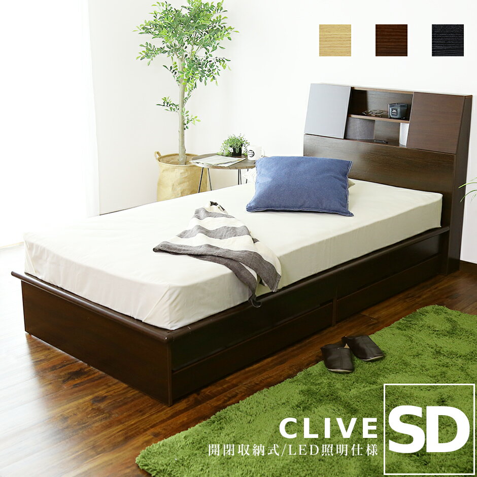 [商品名称]【クーポン20%off 20日20時〜24時】 収納ベッド セミダブル 幅90 引き出し 引出し収納付き スライド収納 ベッドフレーム コンセント 2口付き スマホ充電 扉付き ベッド 収納 引き出し付き 木製 宮棚 棚付き LEDライト照明付き ベッド モダン クライブSD ドリス