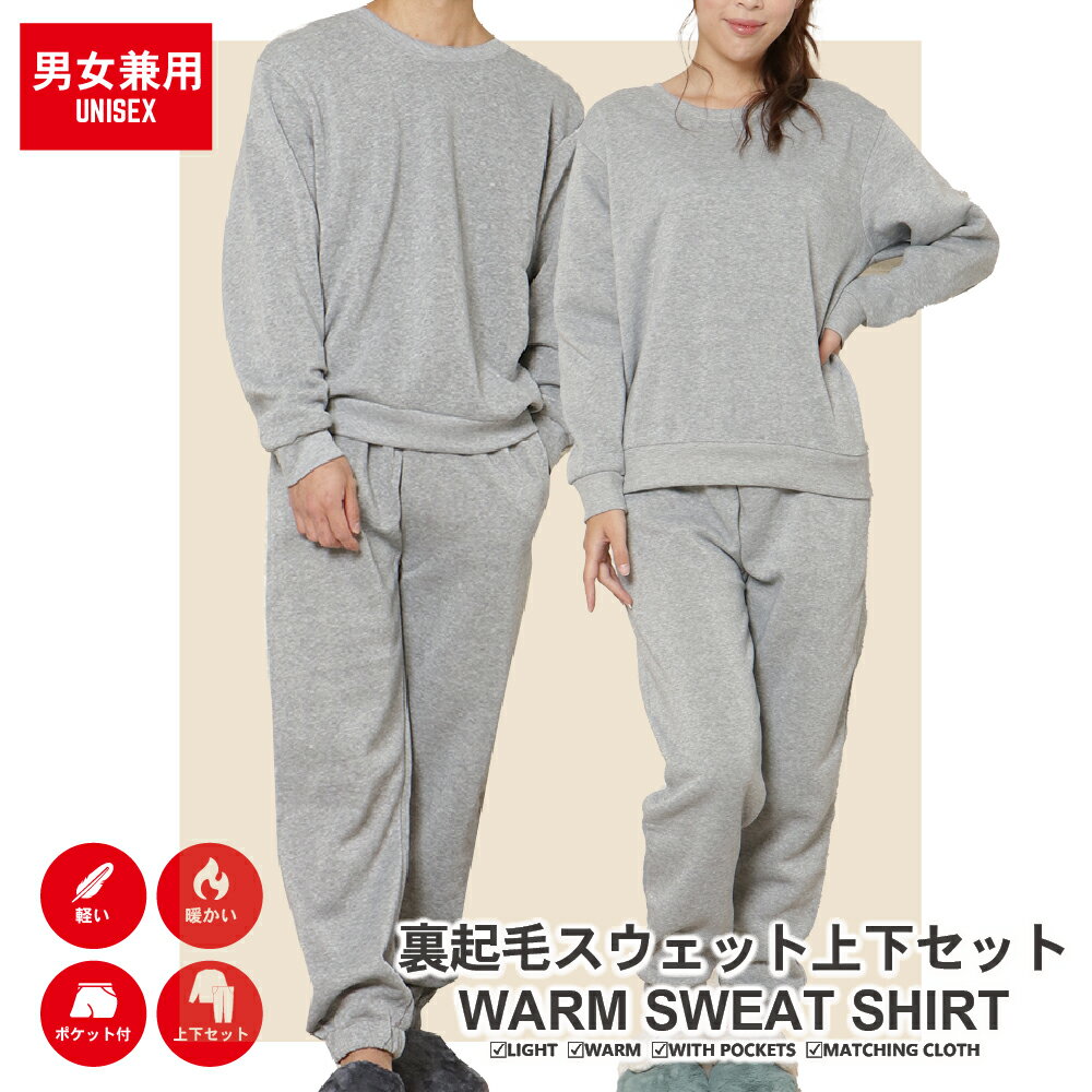 [商品名称]【男女兼用】ユニセックス裏起毛スウェット上下セット セットアップ 部屋着 無地 上下 あったか 軽い 冬 パジャマ ルームウェア 軽い