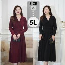 [商品名称]ぽっちゃり ドレス ミモレ丈 袖あり 長袖 大きいサイズ レディース 春 秋 きれいめ パーティードレス Vネック Aライン ワンピ LL 3L 4L 5L かわいい 着痩せ お腹 太もも 胸周り 二の腕カバー シンプル フォーマル ママコーデ 発表会 ブラック レッド