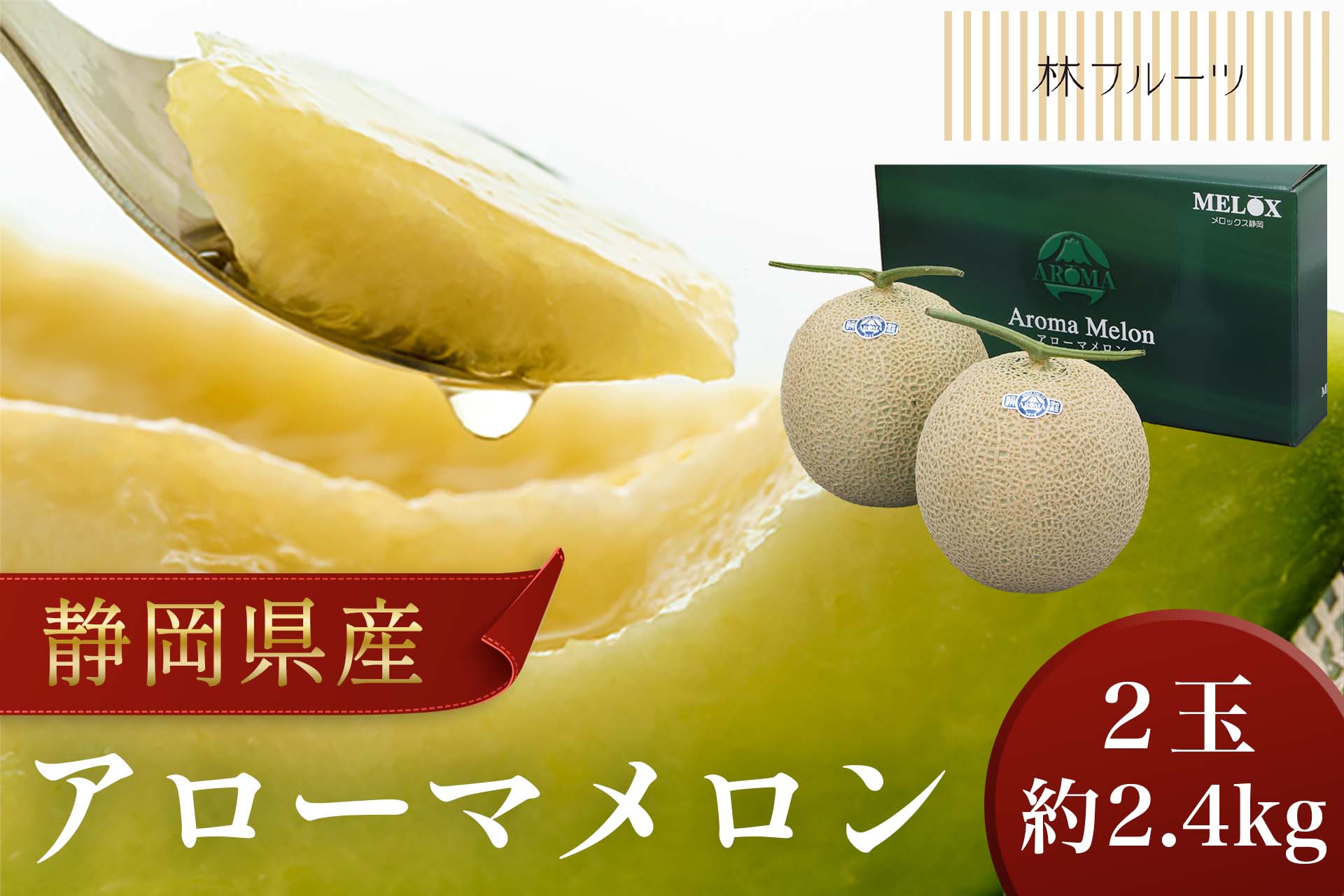 [商品名称]【アローマ マスクメロン 白等級 2玉 (約2.4kg) 林フルーツ】御祝 快気祝 御礼 お見舞い 粗品 内祝 出産祝い お供 志 誕生日 季節の果物 旬 くだもの