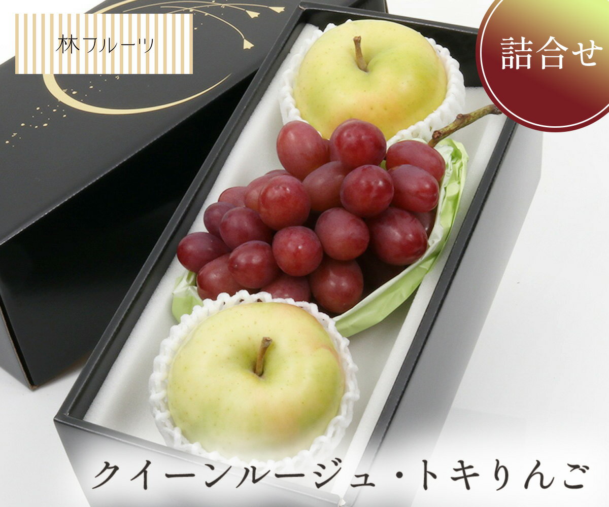 [キャッチコピー]くいーんるーじゅ 種なし 皮ごと とき トキ シナノゴールド りんご 青リンゴ リンゴ ぶどう ブドウ 贈答用 進物用 ギフト フルーツ 果物 くだもの ブランド 詰合せ ハヤシフルーツ