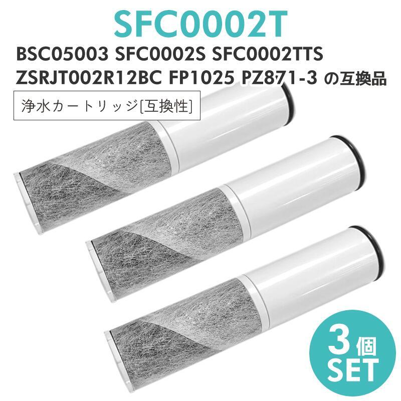 [商品説明]商品情報紹介■ 水栓一体型浄水器 交換用 浄水カートリッジ BSC05003 と SFC0002T の互換性のある商品【互換品】■ 他の互換性のある浄水カートリッジ: SFC0002TTS、ZSRJT002R12BC、PZ871-3、FP1025(パッケージや品番・ラベルが違うだけで中身は同商品、同性能ですので共通してお使い頂けます。)■ 浄水能力: 5物質除去。ろ材の種類: 中空糸膜、イオン交換繊維、活性炭、不織布。サイズ: 直径30mm×長さ130mm ■ カートリッジの取替時期の目安: 1日に20Lご使用の場合、約2ヶ月/個。(取替時期の目安は、使用水量・水質・水圧などにより異なります。)■ 浄水カートリッジは定期的にお取替えください。(浄水カートリッジ取り替え後は、浄水を1分以上流してからご使用ください。)浄水カートリッジ対応の水栓(蛇口)型番F401 (S-F401)、F402(S-F402)、F404(S-F404)、F425(S-F425)、F425K、F425BS、F425KBS、F426(S-F426)、F426K、F427、F427K、F428、F428K、F428BS、F428KBS、S-F402T、ZSMJT402R12A(H・W)-E、ZSMJT426R14A(H・W)-E、ZSMJT428R19A(H・W)-E、ZSMJT871K10A(H・W)-T、TJS-SUI-HN、TJS-SUI-HNE、TJS-SP20E、TJS-SP20ET、TJS-SP25ET、KM871、KM871Z、FJ0113、AB211 ...注意事項・使用時の破損や事故等につきましては責任を負いかねます。・輸入品の為、輸送の際に生じるキズ・汚れ・箱潰れがある場合がございますが新品です。・サイズ・重量は、多少の誤差が生じる場合がございます。・あくまで画像はイメージですので、商品改良の為パッケージや一部仕様が少し変更になる場合もございます。・お使いのブラウザや設定により、画像と実際の商品との若干の色の違いが生じる場合がございます。・会社概要・お買い物ガイドに他にも詳しく記載しておりますので事前に確認していただくことをお勧め致します。【最強翌日配送 期間限定 ポイント10倍】【3本セット】 sfc0002 sfc0002t 浄水器 カートリッジ(BSC05003 SFC0002T SFC0002TTS ZSRJT002R12BC FP1025 PZ871-3 の互換品)交換用 浄水カートリッジ 水栓一体型浄水器 取替用カートリッジ 浄水器内蔵ハンドシャワー水栓用 【レビュー特典!1本無料お試】sfc0002t ビルトイン浄水器 水栓一体型用 浄水カートリッジ 浄水器内蔵水栓F401/F402/F404/F425/F426/F427/F428 紹介 ■ 水栓一体型浄水器 交換用 浄水カートリッジ BSC05003 と SFC0002T の互換性のある商品【互換品】■ 他の互換性のある浄水カートリッジ: SFC0002TTS、ZSRJT002R12BC、PZ871-3、FP1025(パッケージや品番・ラベルが違うだけで中身は同商品、同性能ですので共通してお使い頂けます。)■ 浄水能力: 5物質除去。ろ材の種類: 中空糸膜、イオン交換繊維、活性炭、不織布。サイズ: 直径30mm×長さ130mm ■ カートリッジの取替時期の目安: 1日に20Lご使用の場合、約2ヶ月/個。(取替時期の目安は、使用水量・水質・水圧などにより異なります。)■ 浄水カートリッジは定期的にお取替えください。(浄水カートリッジ取り替え後は、浄水を1分以上流してからご使用ください。) 5