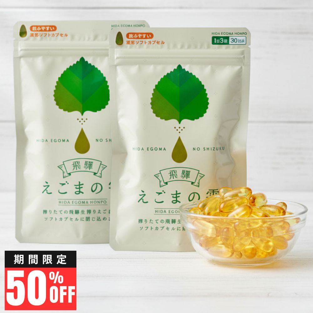 [商品名称]【 赤字覚悟★50%off】[スーパーセール 半額] 飛騨 えごまの雫 サプリ 90粒 2袋セット ソフト カプセル エゴマ油 えごま えごまオイル オメガ3 α-リノレン酸 国産 低温圧搾 荏胡麻油