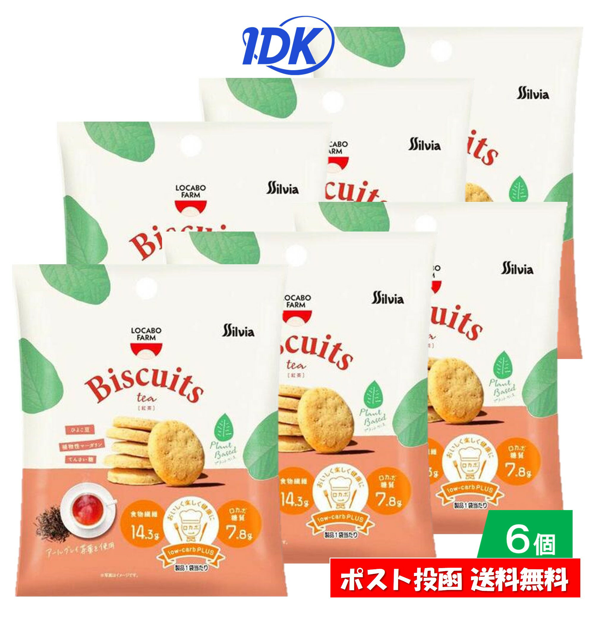[商品説明]商品情報商品説明ダイエット中や健康に気を使っており、家や職場や外出先で小腹が空いたときなどにちょっとお菓子を食べたい方におすすめ。原材料マーガリン(国内製造)、てんさい糖、還元難消化性デキストリン、おからパウダー、小麦粉、粒状大豆たん白、難消化性デキストリン、もち大麦粉、ひよこ豆粉末、紅茶エキス、紅茶葉、玄米粉、食塩/加工デンプン、香料、膨脹剤、乳化剤、酸化防止剤(V.E)、(一部に小麦・大豆を含む)栄養成分表示(1袋あたり)エネルギー・・・116kcalたんぱく質・・・1.5g脂質・・・5.6g炭水化物・・・22.1g(糖質7.8g・食物繊維14.3g)食塩相当量・・・0.15gアレルギー表示小麦・大豆、コンタミ:卵・乳味/香りアールグレイ茶葉を使用原産国・製造国日本保存方法直射日光、高温・多湿を避けて、常温で保存してください。使用上の注意●小さいお子様や、ご年配の方が召し上がる際には、喉に詰まらせないようにご注意ください。●一度に多量に食べると体調によりお腹がゆるくなる事がありますが一時的なもので心配ありません。●製品中の粒状のものは原料由来によるものですので、品質には問題ありません。●商品の特性上ワレ、カケが発生する事があります。●開封後は賞味期限にかかわらずお早めにお召し上がりください。製造者株式会社シルビアお問い合わせ先:株式会社シルビアお客様相談室 0120-920-689受付時間 9:00〜16:00(土日祝日、弊社休業日を除く)文 責株式会社IDKこの商品は 【6個セット】ロカボファームビスケット 紅茶味 30g ロカボ ビスケット 糖質オフ 糖質を抑えめ 糖質10g以下 罪悪感無 おやつ 食物繊維 おから ダイエット 健康 小腹 お菓子 ポスト投函 送料無料 ポイント低糖質ビスケット/ロカボ/ダイエット/ロカボ糖質10g以下/食物繊維にも配慮/ビスケット/賞味期限365日 ショップからのメッセージ 納期について 4