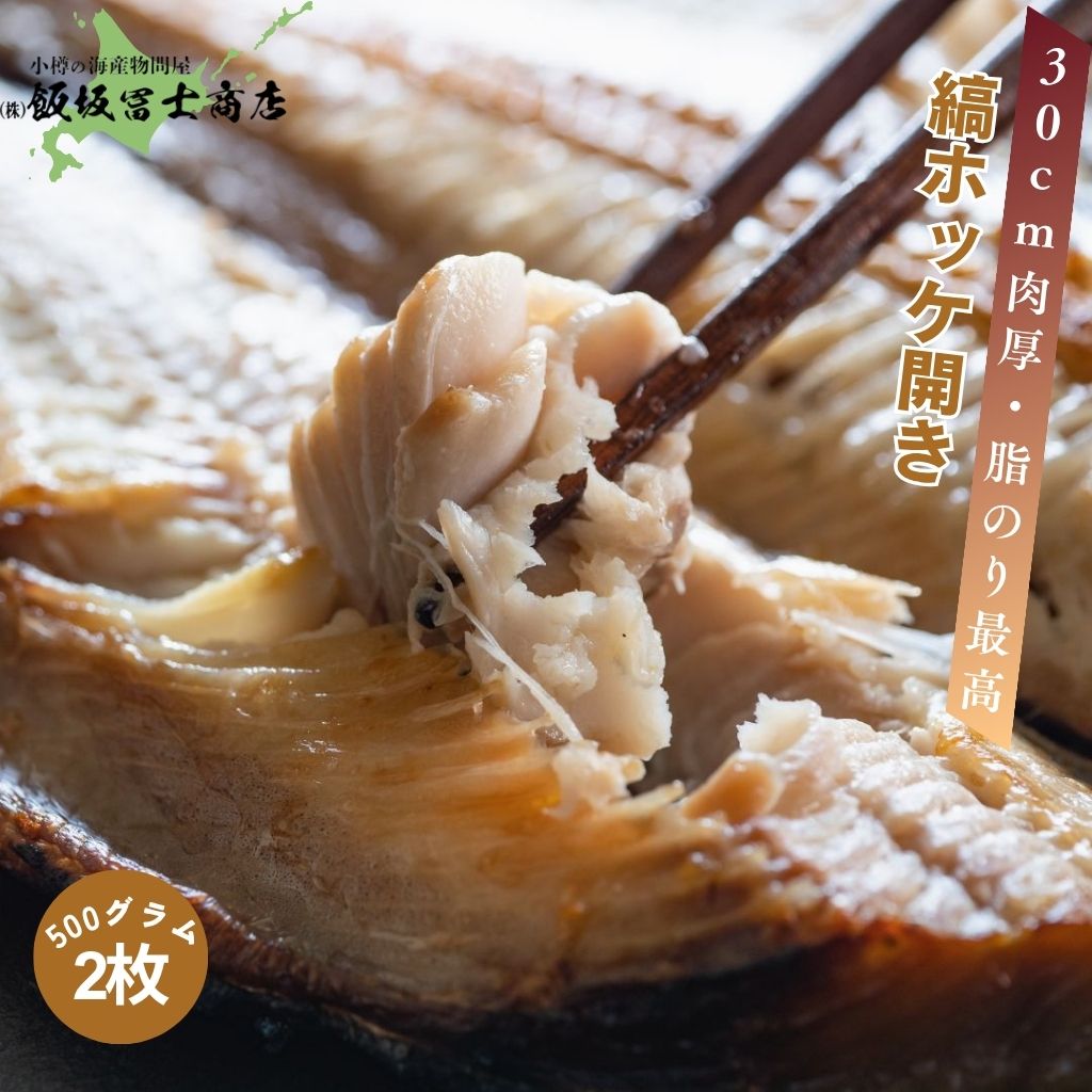 北海道小樽市 飯坂冨士商店 超特大 縞ホッケ開き 2枚入 1枚あたり50
