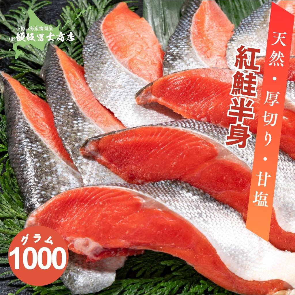 北海道小樽市 飯坂冨士商店 天然紅鮭 甘口 半身 約100g×5切×2