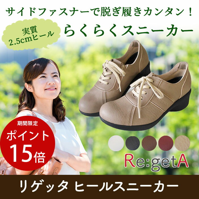 [商品名称]リゲッタ Re:getA ヒールスニーカー レディース R-2163 靴 S M Lサイズ 女性用 コンフォートシューズ 通勤 軽量 甲広 幅広 日本製 小さいサイズ ウォーキング ブラック レッドブラウン ブラウン ライトオーク ホワイト